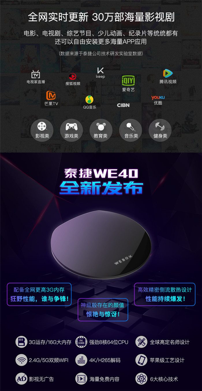 【金测评】泰捷WE40电视盒子评测:拒绝120秒广告播放【金测评】看电视我不想办会员不想看广告——泰捷盒子可以“解”【金测评】泰捷电视盒子WE30PRO体验,性能强大,安装自由【金测评】泰捷方盒WE30C:看电视久违的清爽