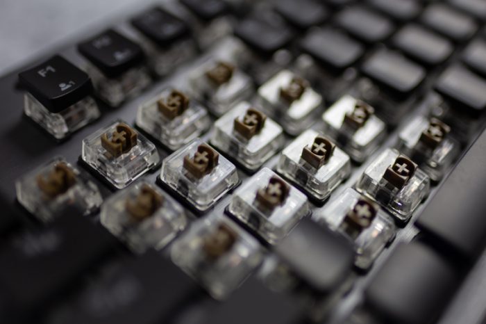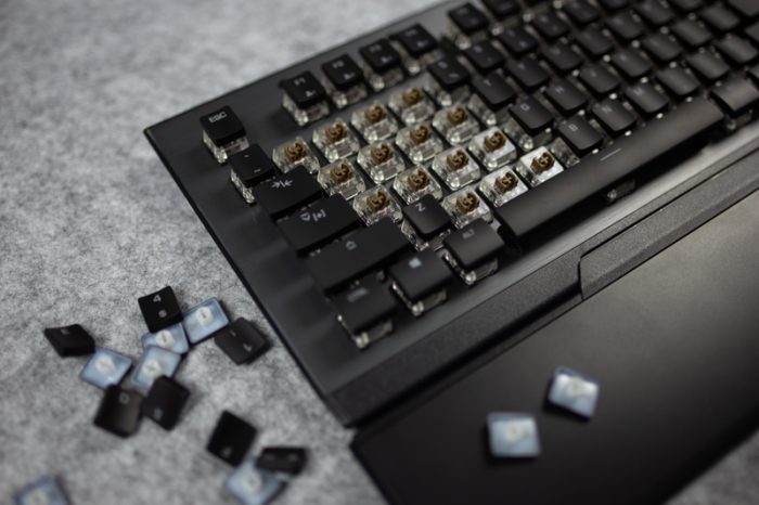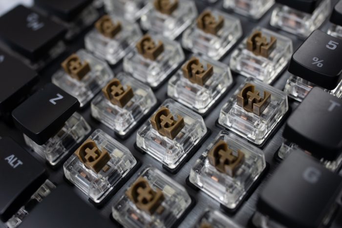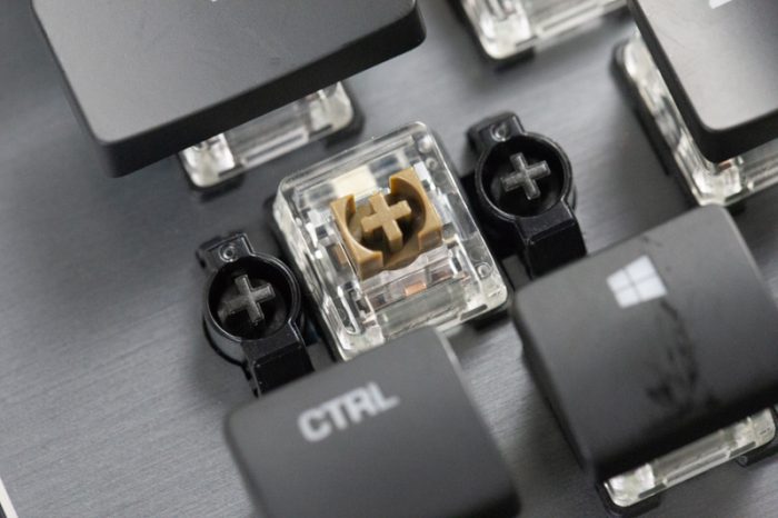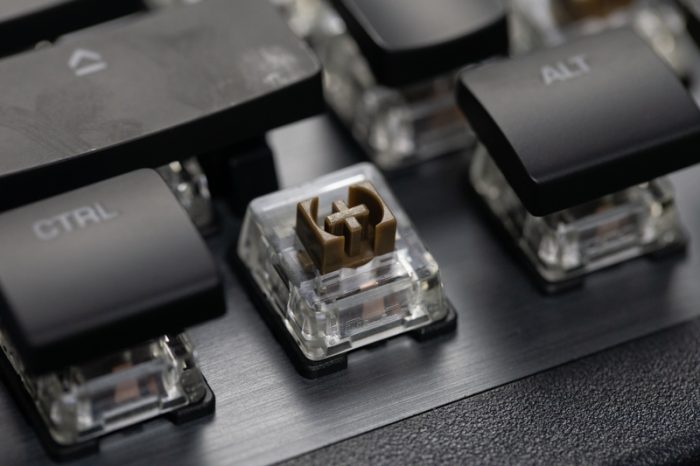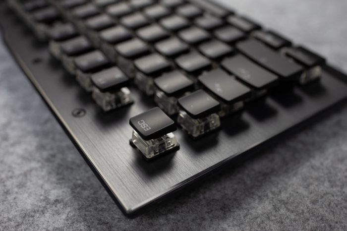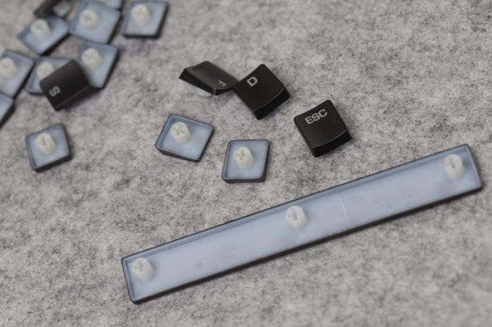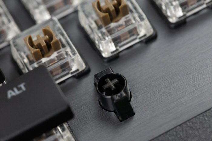 ROCCAT Vulcan 120 AIMO的轴体是与TTC深度独家定制的Titan Switches(泰坦轴),估计大家对于这个轴体十分好奇,所以接下来详细聊一聊Titan Switches。由于键帽是超薄型,所以拆卸十分方便,不需使用拨键器轻松就可以拆卸下来。