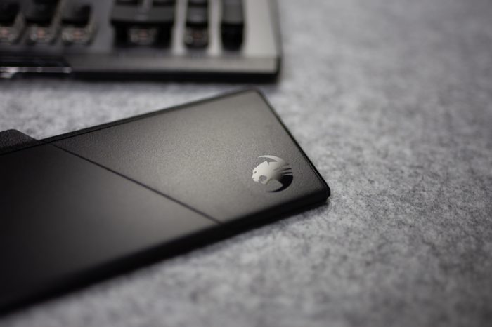 ROCCAT Vulcan 120 AIMO配备了一块独立手托,比起皮料或者海绵手托,这种纯塑料的使用手感略逊一筹。手托表面的纹理不尽相同,左右两侧的磨砂质感会比中央区域明显一些,手托用iPhone xs max软件测试了一下大约是9厘米,比较宽大,可以很好的支撑手腕部位。由于我的桌面十分局促,所以平时并没有使用到它的手托,如果你的桌面空间比较充裕,强烈建议使用它,对于减轻手腕疲劳还是非常受用的。