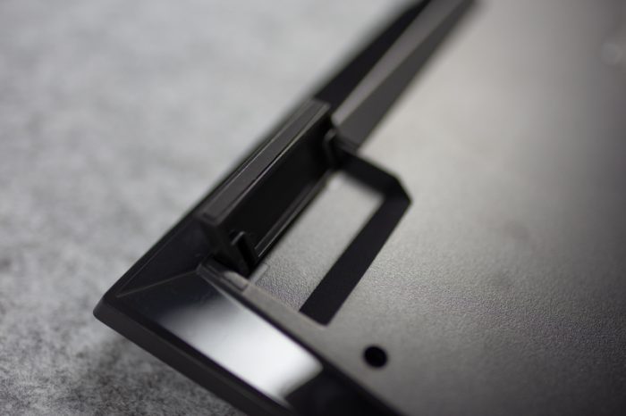 由于键盘厚度极薄,并且按键没有做梯型高度处理,所以可能很多朋友会担心这款键盘会不会显得太扁平了一点从而影响使用体验。厂商当然是考虑到了这一点,撑脚可以抬起约30°角,对于我本人而言算是It is just fine。