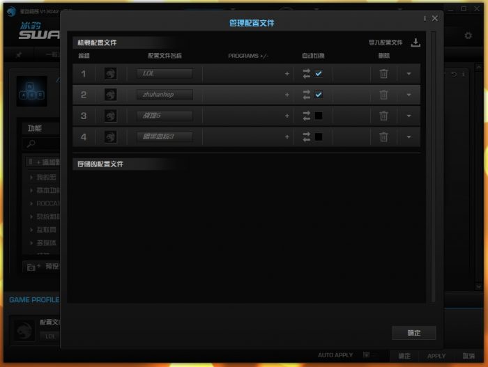 配置文件的管理页面,配置文件名支持中文名输入,照顾到了国内玩家使用习惯。