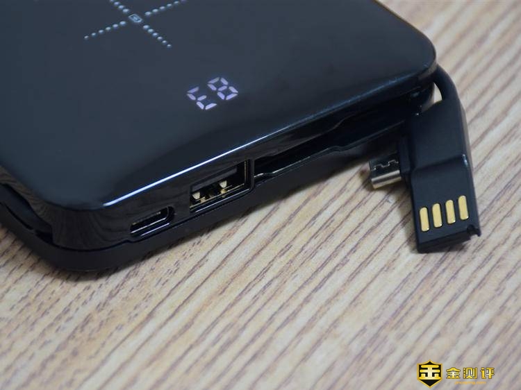 南卡无线移动电源POW-1机身上自带一根 Micro USB+USB的充放电线缆,通过侧面线槽进行收纳和固定,不可拆卸式设计避免带了移动电源却忘记带充电线的尴尬。