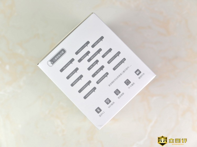 包装盒的侧面介绍了阿希莫双子猫儿童智能音箱的功能特点以及使用方式。