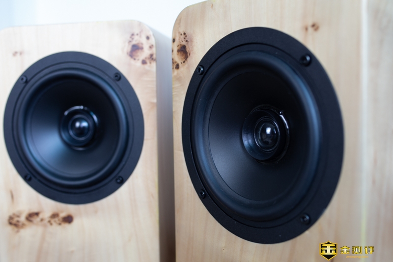 我们一般见到的书架箱都是高音和重低音单元分开的,而NS16喇叭使用了一个5寸同轴单元,主要是因为厂商将其定位于中近场聆听使用,可以摆在桌面或小房间上来配合使用,这就对箱体体积提出了较高要求。