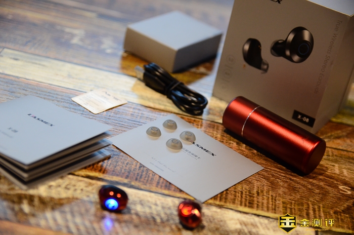 打开包装与之外表相反的是其内部使用的了斜面去营造出了一种”礼品”级的包装效果,对于耳机主体的衬托十分明显,并且相比于那种传统的”天地盖”设计颇有让人眼前一亮之感,另外针对日常使用环境勒姆森X-08包装中也是随机附送有两对不同尺寸的硅胶耳套可供用户选择使用,整体还是较为用心的。