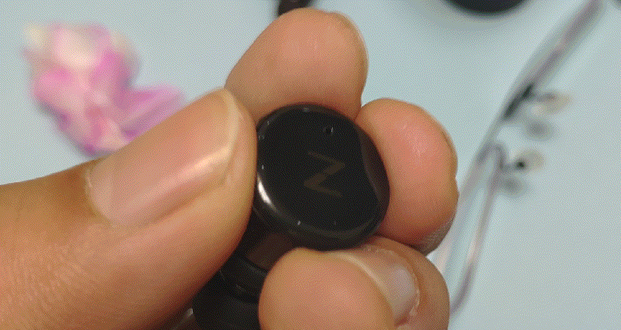 耳机外侧有Z型LED指示灯,放入充电仓显示红色,取出时蓝色闪烁表示连接手机,在提示一小段时间后,指示灯就会熄灭,避免不必要的电量浪费。指示灯下的小孔是话筒,左右两个耳机都有话筒,从而保证独立使用。