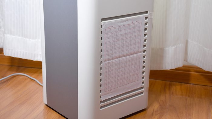 在机身侧边的进风格栅处贴上一张信纸,将净化器开启至转速较高的模式,信纸会被电机强劲的吸力吸附在进风格栅外侧,因此也不难判断X60的风机吸力也有着很强的性能。