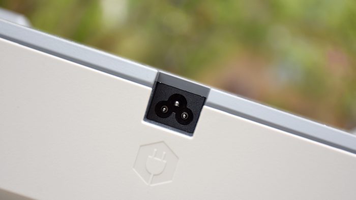 电源接口位于机身底部中间的位置,采用的是传统的三角电饭煲接口。随机附赠的线材长度大约为2米,基本可以满足日常环境下的使用需求。这里有一个小小的槽点,就是电源接口位置偏低并没有标记插入的方向,不太便于盲操作。