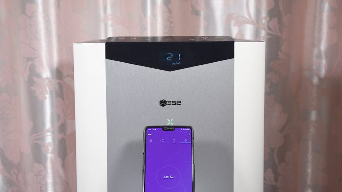 352 X60保持了与前代产品一致的设计风格,三围尺寸依旧是310*310*763mm,相比市面上大多数空气净化器要显得粗壮一些,但与352自家的X83系列相比还是要苗条不少的。