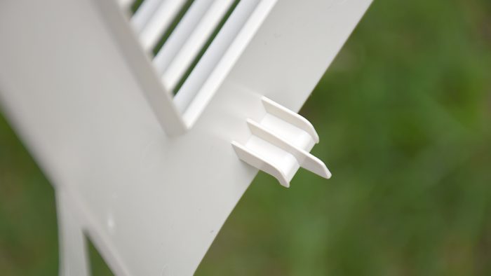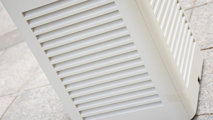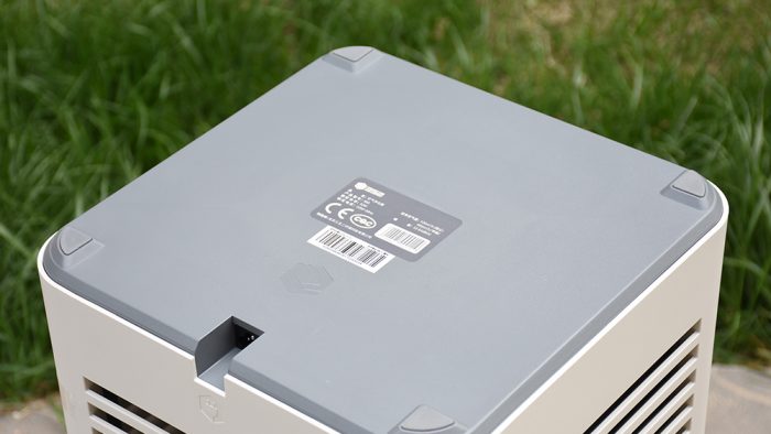 机身两侧是对称的设计,上方有一个方便搬运的提手,下方接近一半的区域是横条状的进风格栅。为了防止有灰尘落入,格栅开孔部分做了斜面向上的角度处理。