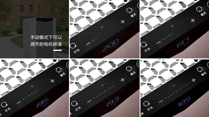 在极速模式下,可以通过风量加减按键来调整电机转速,以调整不同的净化能效,每次调整对应增加或减小两个层级,共有五个档位可以调节。不过在X60中并不能以数值的形式直观显示每个档位的净化能力,初上手的时候还是有些不知所措。