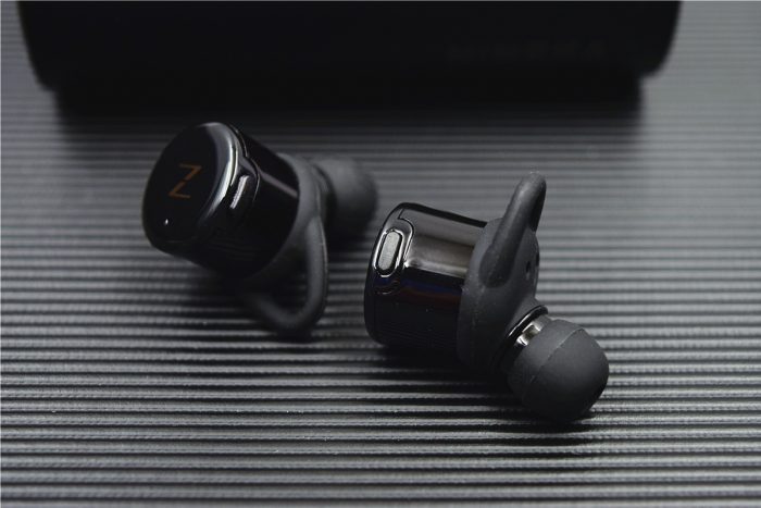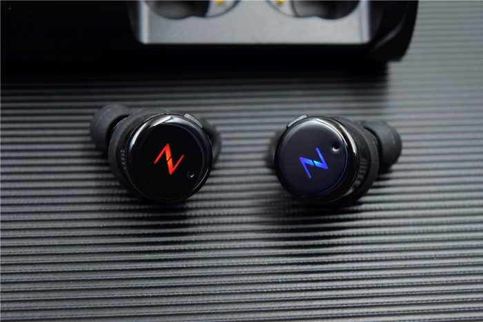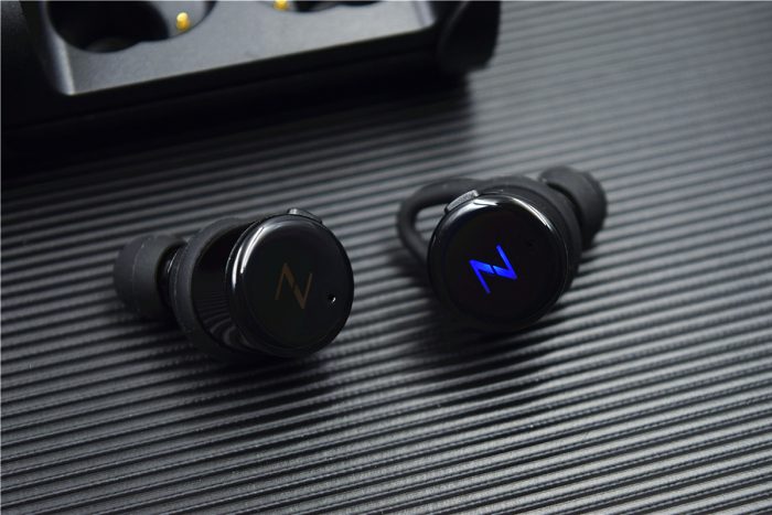耳机的正面印有个“N”字,集成了指示灯设计,待连接时为红蓝交替闪烁,连接成功后为蓝色闪烁,不过耳机正常工作时指示灯为熄灭状态;在指示灯旁边的是麦克风孔,采用第八代环境降噪和回音消除技术,能够智能判断环境噪音,让用户声音更清晰的传递。
