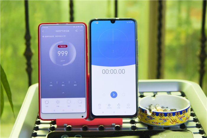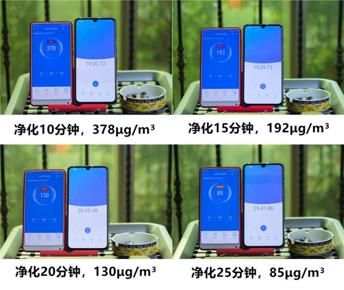 为了更好的检测352 X60的净化能力,笔者使用另一部手机做了计时。