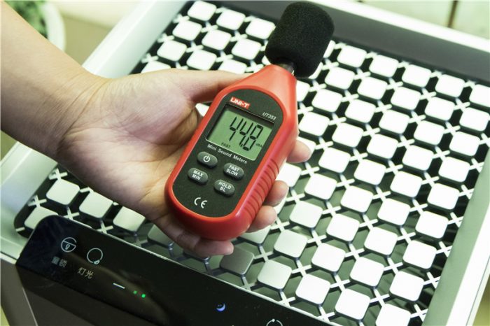 再来看一下噪音方面,毕竟运行的时候,如果风噪太大的确会影响到工作或者睡眠。我们来看看352 X60的实际表现呢。在睡眠模式下,贴近出风口测得噪音数值为44.8分贝,相当于轻声细语,再加上外界的噪音,完全可以忽略不计。