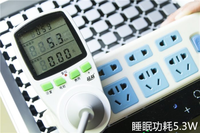 睡眠模式可以看到功耗仅为5.3W左右,其实在实际测试中,功耗一直在4.2W~5.3W之间波动,而待机功耗仅为1.3W。