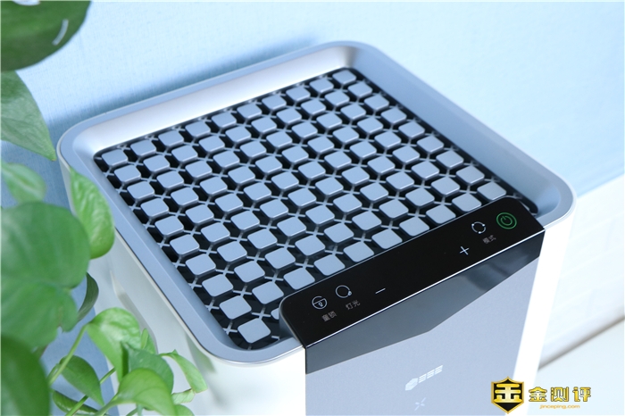 出风口当然位于机身的顶端,采用相同大小的方块跟网状结构相结合的设计风格,看上去非常的新颖,特别有设计感,方块远远看去如同悬浮在上面一样。