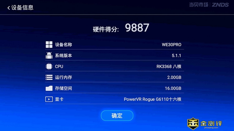 在当贝市场里,查看了设备信息,很意外的发现居然有硬件得分,而且信息的显示比泰捷WE30PRO自己显示的要更加详细。