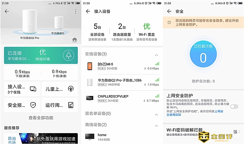 无线路由器相信大家都非常熟悉,几乎每个家庭都有,因我们现代人的生活和学习都离不开网络,离不开WIFI,而只有优秀的无线路由器才能确保wifi网络的畅通、高速度和覆盖全家的每个角落。近日,我有幸从金测评得到一款由华为最新推出的华为路由Q2 Pro千兆子母路由器,经过一段时间的体验,整体感觉非常不错,wifi信号、覆盖范围、智能和子路由的表现都不错,下面就让我从它的外观细节、wifi信号的强弱、覆盖范围分享和体验它。