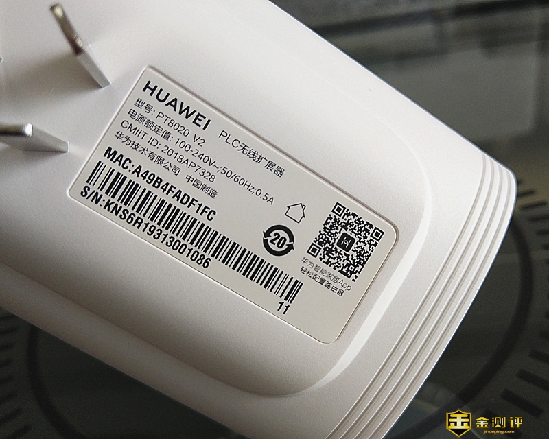 它后侧面设置是三线插头,即插即用,无需任何设置,直接插入墙上的三线插座口上就使用(尽量不要插在接线板上,因说明书上给出远离大功率电器的建议)。还贴有一张印有产品的品牌、名称、型号、电源额定值、厂商名称、华为智能家庭app等信息的贴纸。