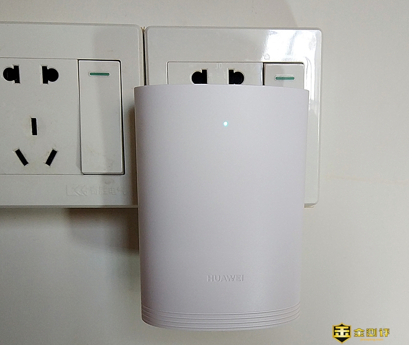 子路由器沿用母路由器的极简设计风格,看起来也是简洁清爽,与洁白的墙壁很融合。它小巧玲珑,只有75.0 mm x 46.3 mm x 103.0 mm的机身大小和只有约200g重,插入插座不会全盖住插座的电源开关,和插入插座更稳固。在它的前侧面靠下端的中间位置出刻有“HUAWEI”的logo,以显示品牌。还在靠上端的中间位置设置了一个led工作状态灯,没连接母路由器显示红灯,连接成功显示蓝灯。