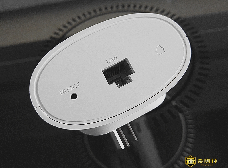 它的底部设置一个千兆网口,方便对网络要求更稳定的电脑端使用,以及设置一个Reset 孔。