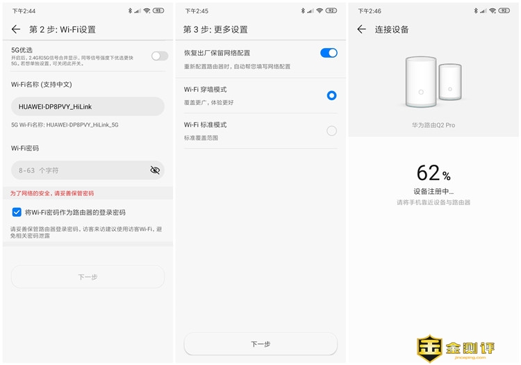随着手机的普及,路由器成为家庭必备产品,每当去亲朋好友家,进门第一句话就是询问WIFI密码。而智能家居设备也已经走入老百姓家中,路由器的地位也越来越重要,没有路由器,智能家居就是一个摆设,必须通过wifi互连起来,才能控制设备。小编作为智能家居忠实用户,有很多智能设备,所以对路由器的要求特别高,我之前使用的斐讯K2P路由器,相信很多家庭都有这款路由器吧,毕竟是免费产品,不要白不要,但是这款路由器每天都要给我掉线,突出断网,必须重启才能使用,有时候正在看综艺就卡在那不动,一下心情就没了。最近小编体验了一款华为路由Q2 Pro千兆子母路由器,在此感谢金测评给予的体验机会,对于这款产品是否好用,先体验下再说。