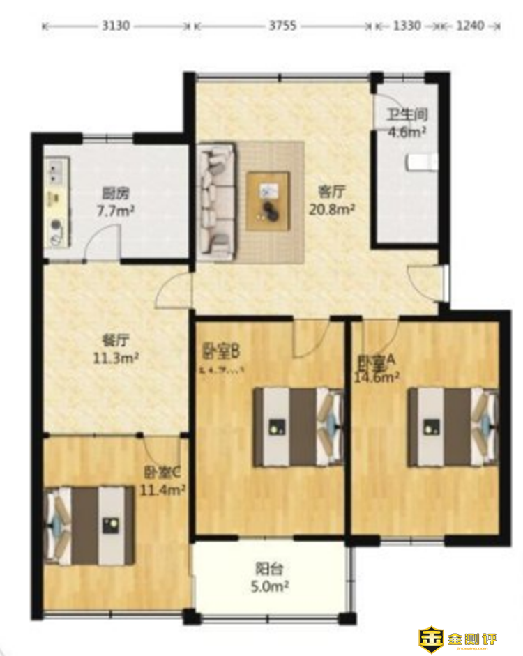 在家中,一般使用手机的区域就是卧室和客厅。这是我家户型图,我家路由器是放置在卧室A,接下来我使用红米7和小米9在不同房间测试分别测试2.4G和5G的上网速度是否受墙体的影响。