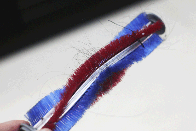 旋转毛刷设计简单却做工精细,弧线蓝红两色相间美观又实用,刷毛为3500RPM亲肤级软绒精选软绒,在清扫灰尘同时也避免了对地板的伤害。