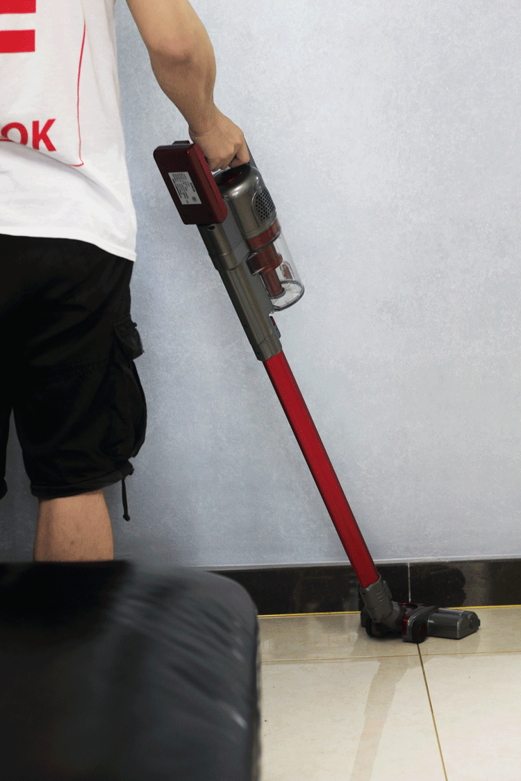 遇到床底或者茶几底下这种平常不方便清扫的地方,小尼熊V-1175无线吸尘器也是轻松应付,将主机端下移地刷前进、地刷退后主机端抬起,这个过程屡试不爽非常给力。