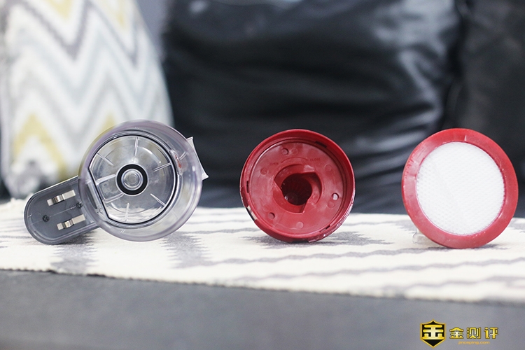 尘杯顶部连接主机位置放置有带密封圈的精细HEPA尘螨滤棉,它将空气中的细微尘螨,粉末和各类过敏原隔绝于此,而且相对许多过滤棉不一样,它还支持水洗,这样减少了后续购买耗材的消费。