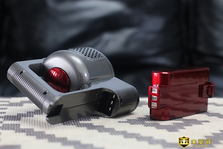 首先来看到的是主机部分,常规的电机加手柄加电池的设计,尽管是ABS材质的外壳,但有了简约的造型和经典的灰红配色,让它看起并没有廉价感。