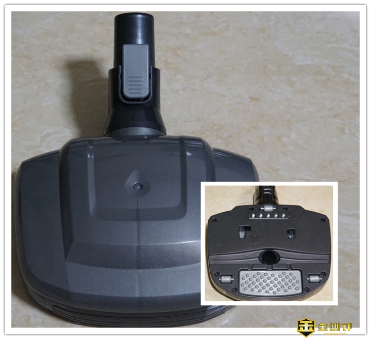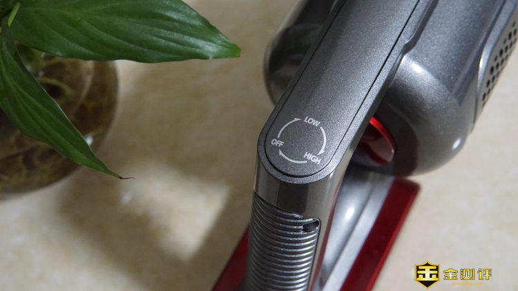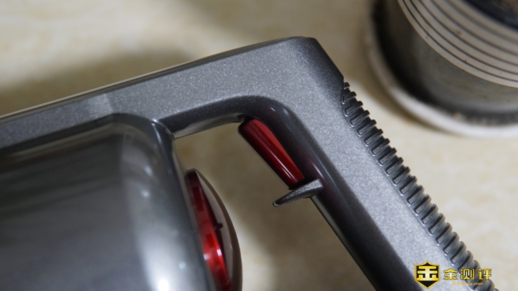 电源开关键为三段式,按动此开关后,吸尘器便开始工作。主机手提处带有纹路,除了具有防滑功能之外,也显得有质感。