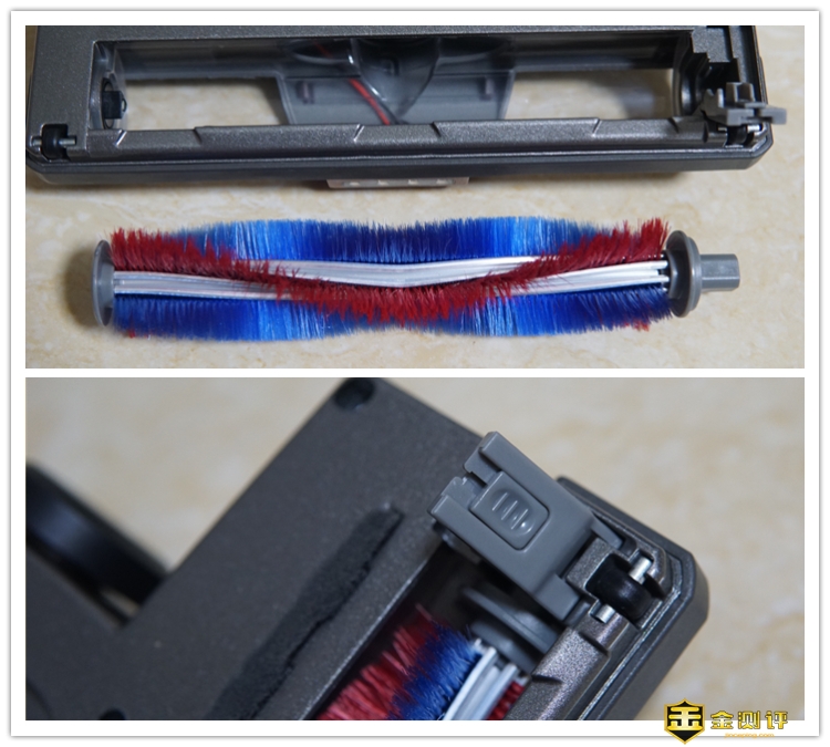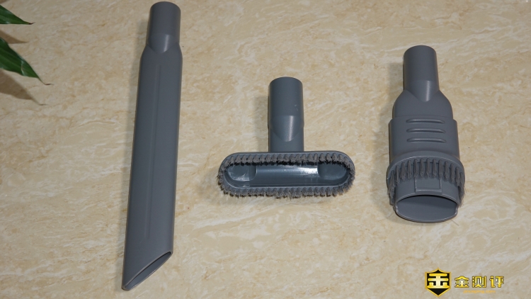 除了主地刷之外,还配送了三个刷头。从左到右依次为:长扁吸、操场形圆毛刷、二合一组合刷。不同的刷头,作用也不同,适用范围更广。
