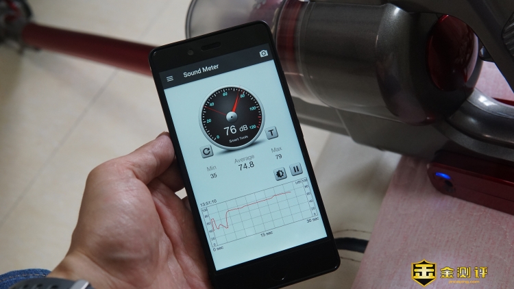 由于没有专业的噪声测试仪,只能通过手机APP来测试吸尘器的实际工作噪音。多次测量后取平均值。小尼熊无线真空吸尘器V1175工作时的平均噪音为74.8分贝的样子,从实际听感而言,是可以接受的,不刺耳,也不存在不适的感觉。