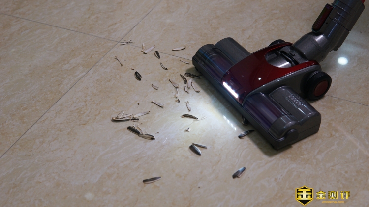 通过动态图片,可以更直观地看到清洁效果。即使是较为大一点与重一点的瓜子,小尼熊无线真空吸尘器V1175也会轻而易举地将吸走。