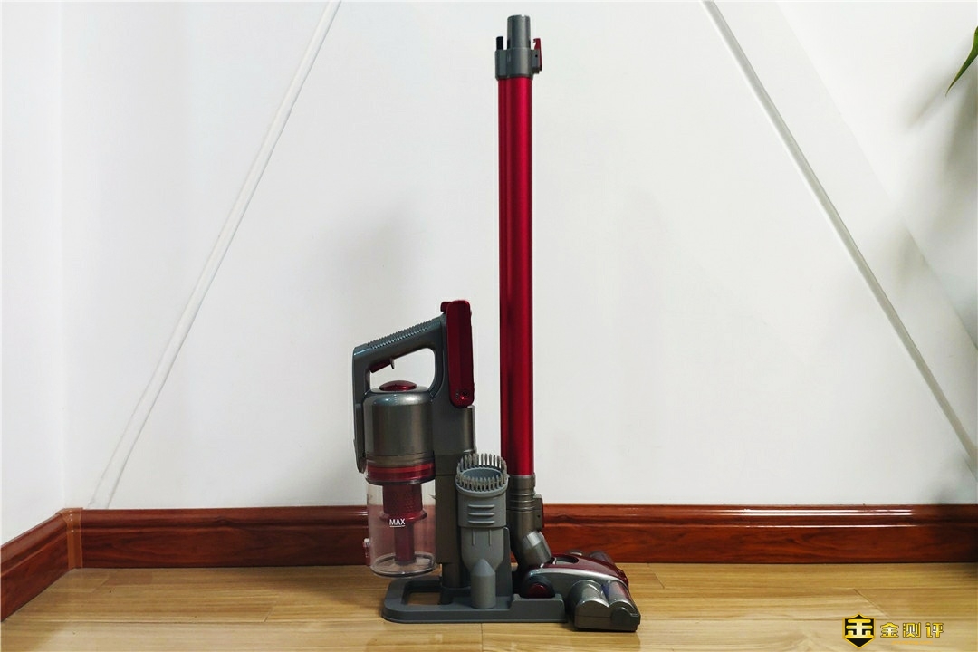 随机附带的底座,有不错的收纳能力,除了能摆放一个吸尘器以外,还可以收纳两个刷头,基本能满足常规的使用,但还是有部分部件需要单独放置,如果能统一收纳就完美了,这里也建议厂家考虑一下这个问题。