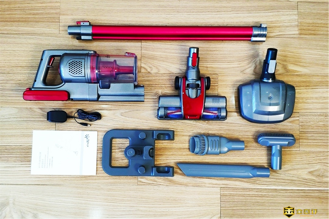 产品清单包括吸尘器主机、铝合金吸尘杆、电动地刷、电动床褥除螨仪、T型毛刷、长扁吸嘴、二合一组合刷、收纳底座、电源适配器、使用说明书;如此多的刷头使吸尘器拥有更多的功能,从而适用更多的场景;另外,说明书内有详细的图文安装及使用方法介绍,即便是老人也能轻松看懂内容。