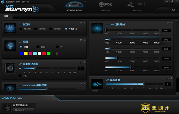 安装驱动后,我们可以看到界面划分基本设置,驱动软件中可调节的参数还是较多的,对于基础按键参数都有设定,也因为这是SE版本,就像iPhone手机一样,是简版,所以颜色不能够1600W色调换,只能固定的设置,也对一些高级参数设定进行了闭锁。之前看到网友经常吐槽官网下载速度慢,自己还有些疑虑,今天体验中,速度依旧非常慢,还需要官网改进。