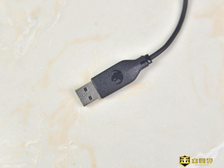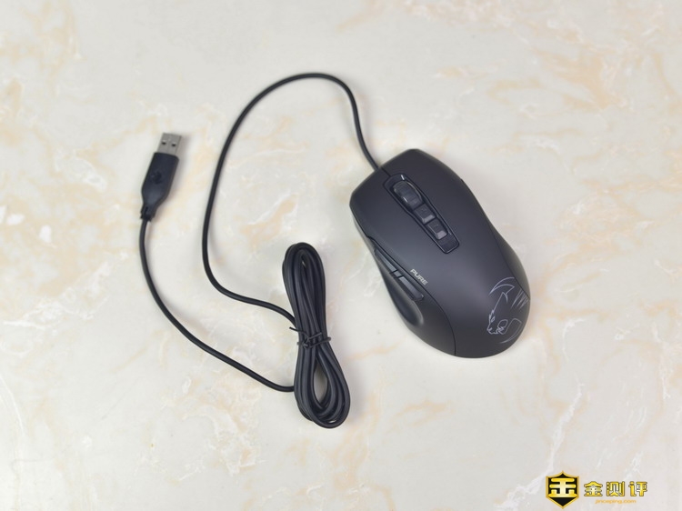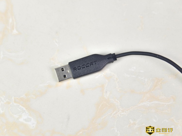 德国冰豹ROCCAT魔幻豹Kone Pure SE升级版的线材约有1.8米,在插头上还印有冰豹的Logo和英文名。