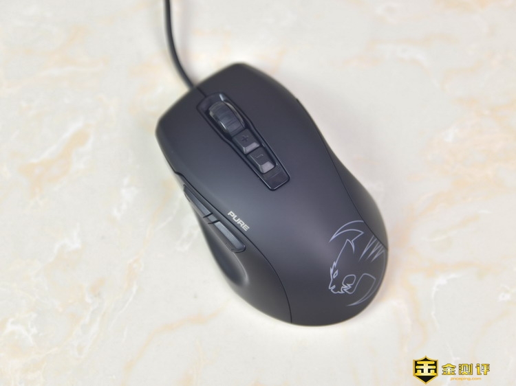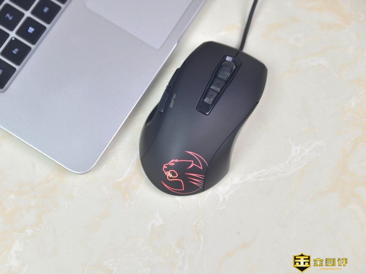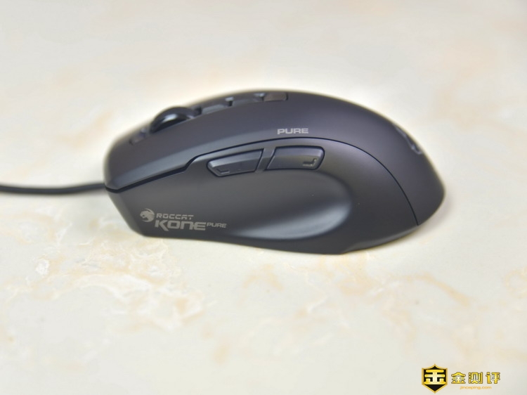 德国冰豹ROCCAT魔幻豹Kone Pure SE升级版的持握很舒适,贴合我的手掌,拇指自然的摆放到左侧的凹槽上。