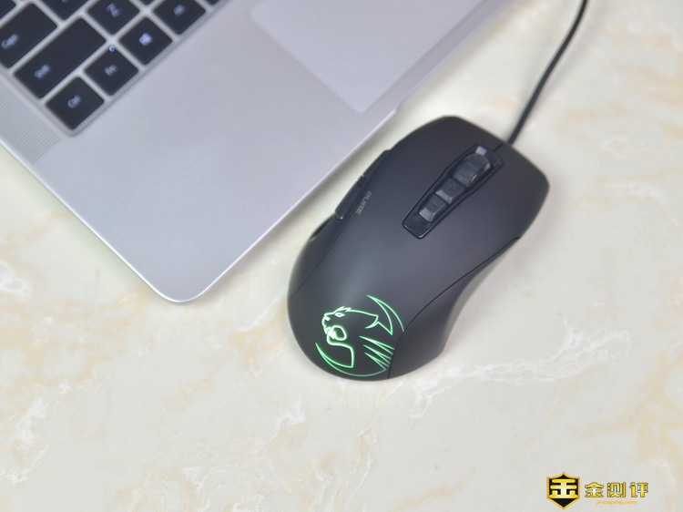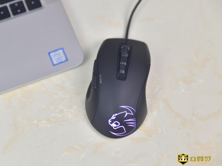 德国冰豹ROCCAT魔幻豹Kone Pure SE升级版连接笔记本后,鼠标的Logo灯系统就自动亮起来了。1.8米的线材对于台式机来说刚好够用,但是对于笔记本来说,太长太长了。