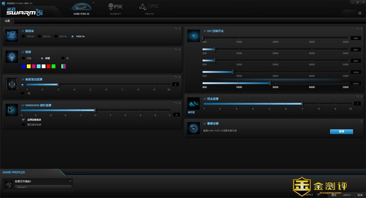 冰豹的产品都有驱动软件来管理,德国冰豹ROCCAT魔幻豹Kone Pure SE升级版自然也不会例外,安装软件后,还需要通过自动下载来下载德国冰豹ROCCAT魔幻豹Kone Pure SE升级版的模块才能正常识别。在驱动软件里可以设定的选项不多,我主要设置的是DPI的档位,各档预设的DPI值都偏低了,然后还可以设定照明系统,只有全亮和呼吸灯模式。相对于我用过的冰豹其他键鼠产品,是比较少的。