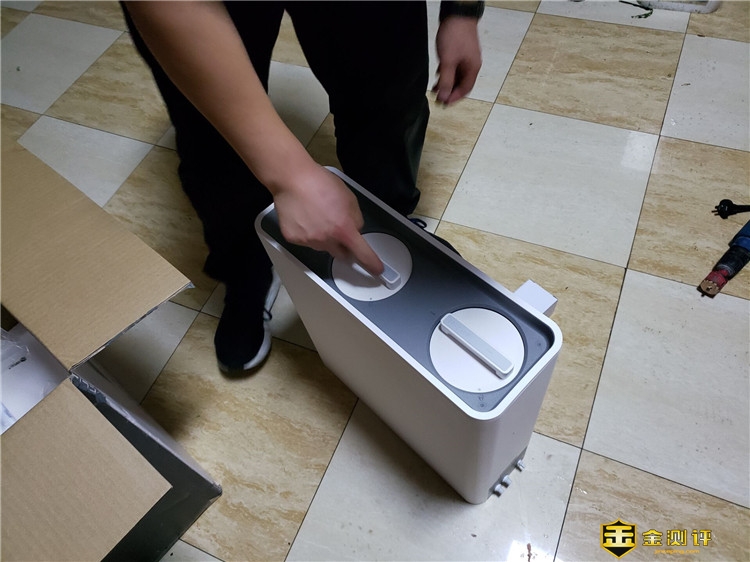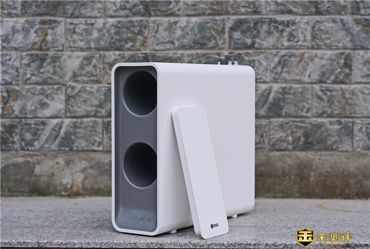 S100净水器的外观设计很有特点,初看还以为是台电脑主机,整机尺寸445*416*415mm,净重13Kg,主体部分使用了白色的工程塑料配合磨砂处理的表面,整体看着很上档次。
