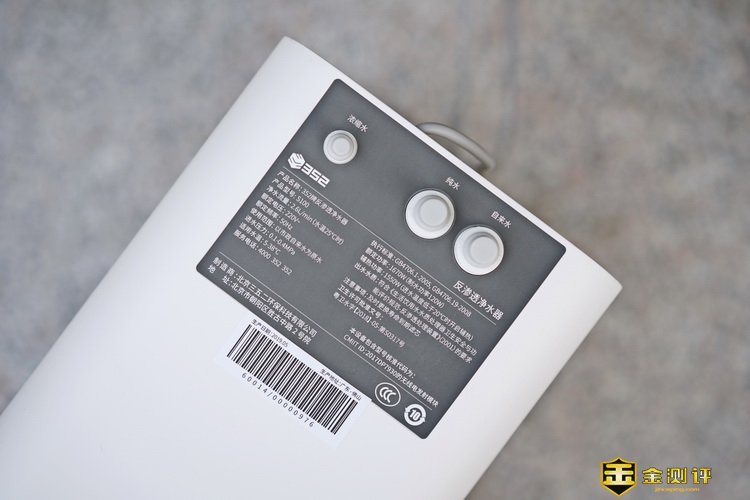 顶部的产品标识及接口,分别对应浓缩水、纯水及自来水,从产品结构上面不难发现,安装还是比较简单的。