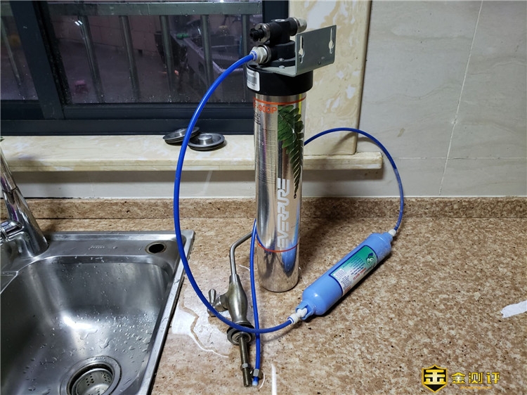 确认水压没问题后,开始组装净水器,总共就二个滤芯,三根水管,所以安装还是比较简单。