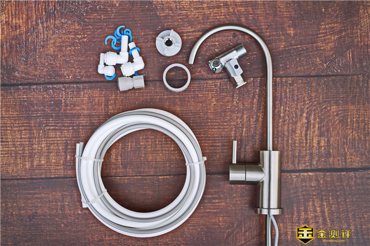 相关配件,主要有不锈钢净水龙头、三通球阀、3分快接直通、3分L快速接头、2分L型快速接头、卡销及PE管组成。