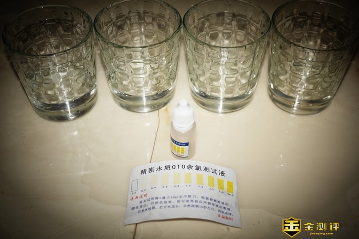 最后用余氯试剂进行剩余氯测试,由于本地的自来水出水的氯剩余就极低,因此所有评测的纯净水均为发现余氯。
