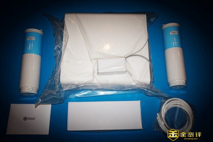 352反渗透净水器的组件非常丰富。除了主机、两组滤芯以外,还提供了专用的水龙头以及配套的连接软管和水管接口等安装所需要的所有材料。