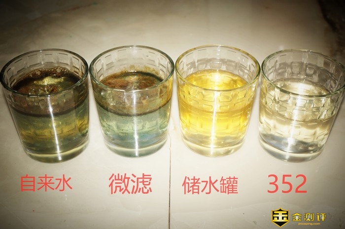 净水器最为重要的还是制出水的质量,我选择了目前正在使用的一款无电的微滤净水器、一款带储水罐的反渗透净水器和352反渗透净水器进行了对比评测,在本人家中自来水TDS值为185的情况下对三款净水器通过TDS检测笔进行测试,分别得出数值,微滤净水器的TDS值为160基本没有太大的作用,有储水罐的净水器TDS值为40基本达到了直饮的标准,而352反渗透净水器的TDS值仅为13,本人又使用一瓶瓶装纯净水进行测量TDS值为9。352反渗透净水器是最为接近瓶装水的净水器,直饮完全没有问题。