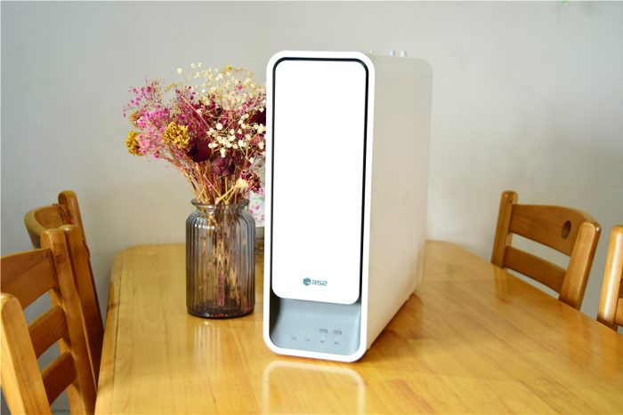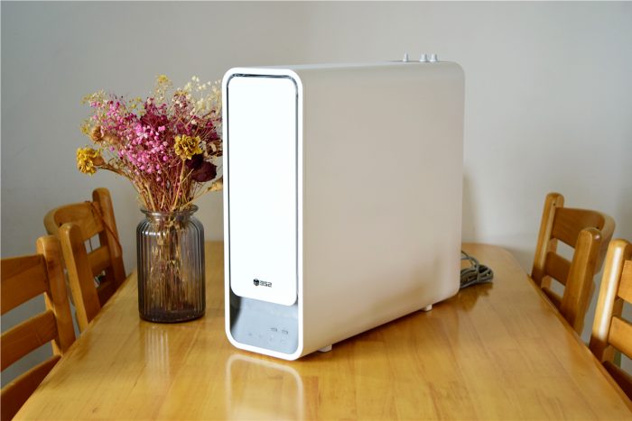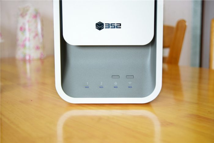 352智能净水器采用了极简美学设计理念,一体式的机身表面看不到一颗螺丝,机身边角处都经过了弧度除了,让整机看起来十分圆润。虽然这是款放置水槽下方的厨下式净水器,不过即使摆放在台面上,也依旧是很漂亮的,可以看得出官方在细节之处也是很注重的。